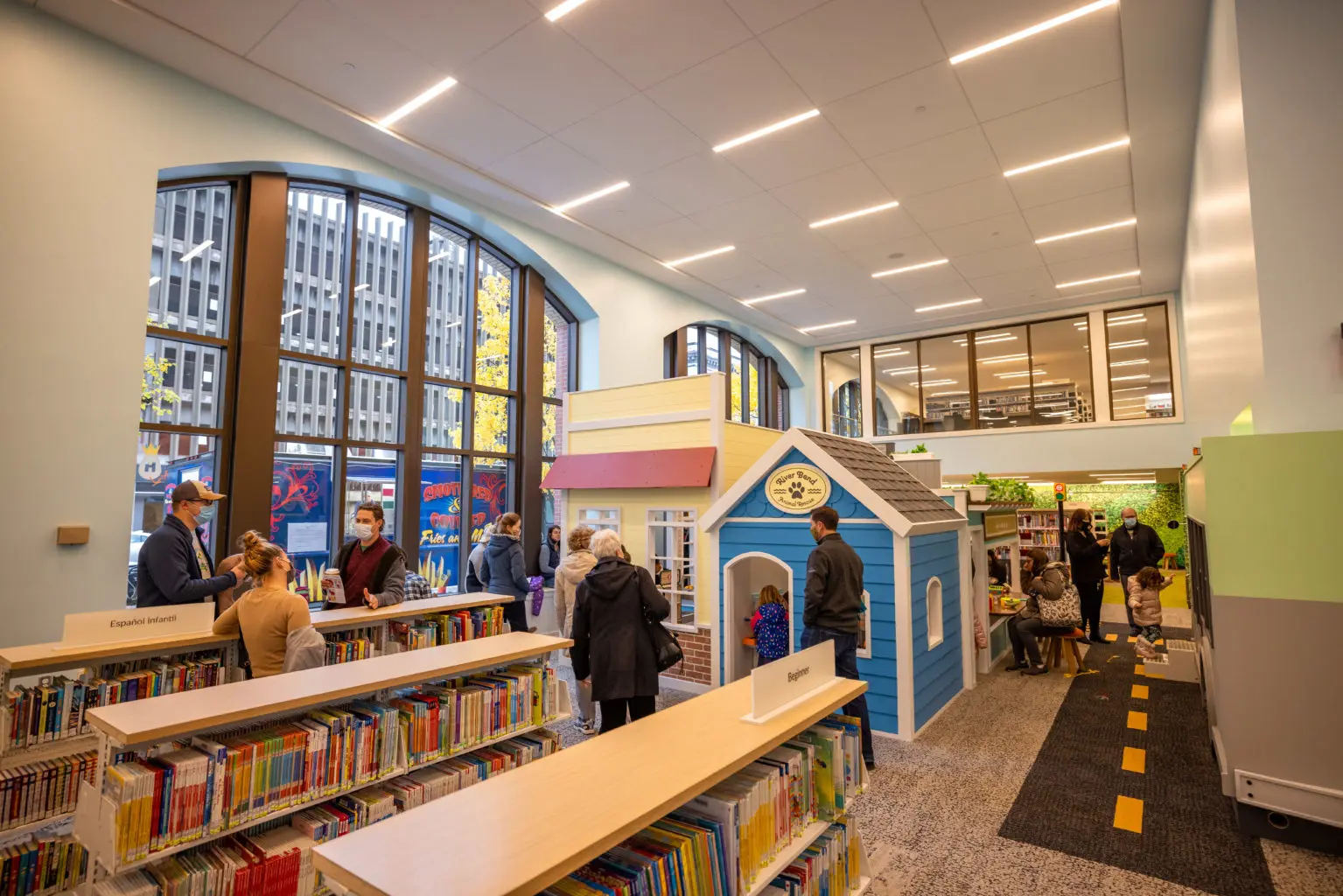 “There was really a lot of strategic thinking about how to reorganize the space within the library,” DelVecchio said. “So that we didn’t have to change [the layout of] where the stairs and elevators were located, and yet were able to have double height spaces…in the Children’s area and at the entrance.”