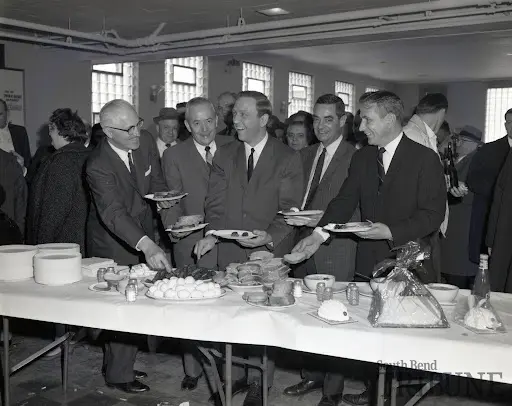 An open-air motorcade drove down Lincolnway as South Bend Tribune reporter Jack Colwell and Senator Bobby Kennedy made their way to the west side of South Bend, in April of 1968. When the car doors opened they emerged to crowds of people celebrating at Polish meeting houses with food and drink in hand, eager for a chance to shake hands with the senator.