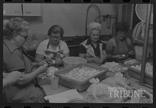 Dyngus Day celebrations have historically been held at Polish institutions, including the West Side Democratic & Civic Club and the M.R. And Z.B. Falcons buildings. There, volunteers and members spend long hours over the stove and in the kitchen preparing kielbasa, noodles, hard-boiled eggs, and delicious desserts to feed hungry crowds. The sound of polka music fills the halls, where dances and drinks are shared in between handshakes and speeches from politicians hoping to connect with the South Bend community. All across the area, residents and visitors alike enjoy Dyngus Day and Solidarity Day traditions, where efforts to strengthen local connection and efforts to make improvements are powered by political action.