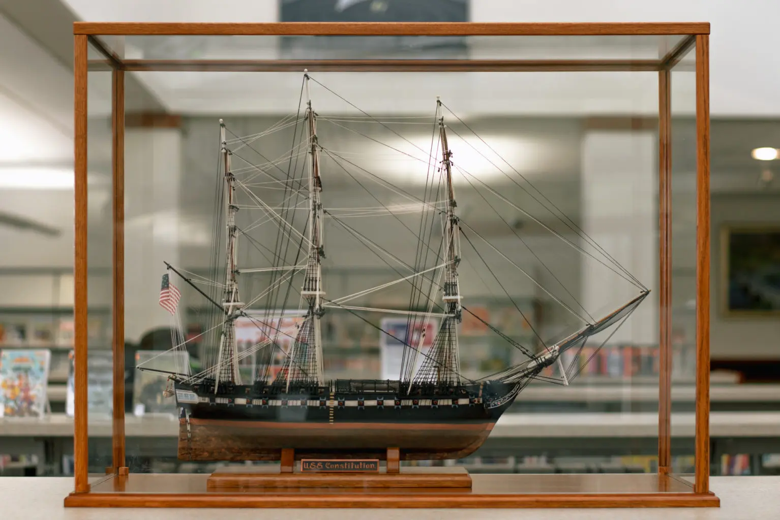 Last year, at age 79, Joe completed his model of Old Ironsides, as well as an accompanying stand and glass case, 64 years after beginning the project. The finished piece is three feet long by twenty inches wide and the mast is another two feet high. Every piece of the model was handcrafted by Joe, including the barrels of the cannons, which were hand poured, the glass case, and the stand. The ship will be on display at River Park Branch this spring.