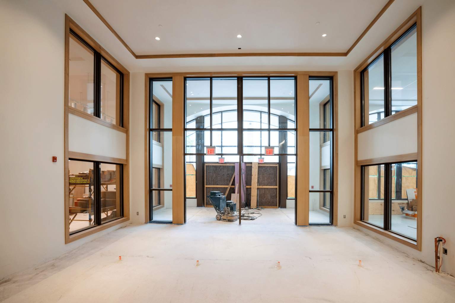 Walls are framed at the Community Learning Center and casing & windows are installed inside Main Library.