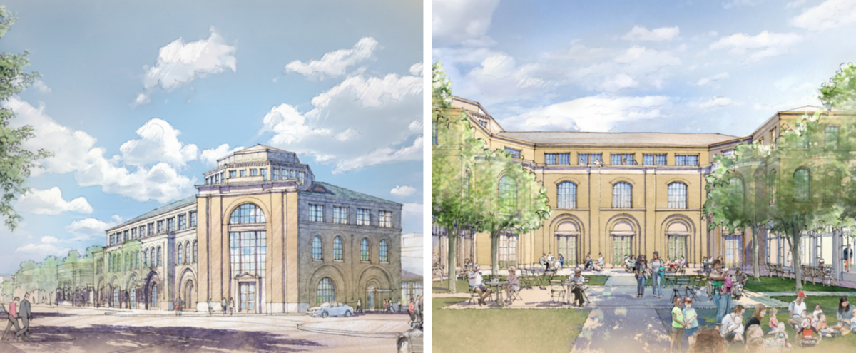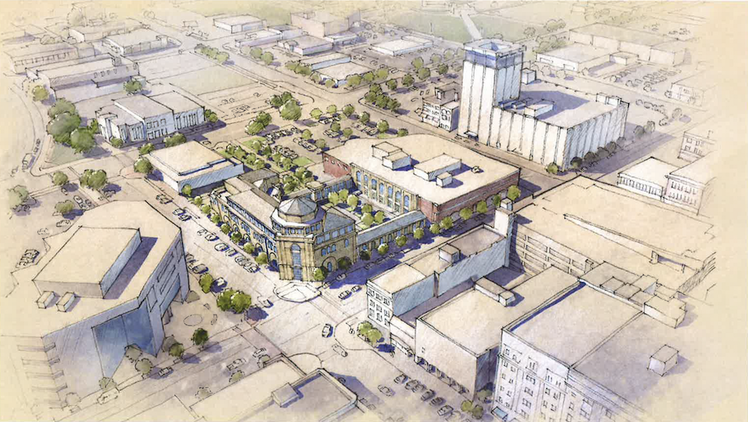 The below drawing is a rendering of the proposed Main Library Block. It is a concept drawing from RAMSA that shows what the new block could look like.