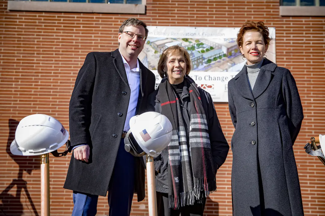 The St. Joseph County Public Library, in partnership with the Community Foundation and the City of South Bend, celebrates the start of construction on the Main Library renovation and expansion projects at a groundbreaking ceremony in the Main Library plaza.