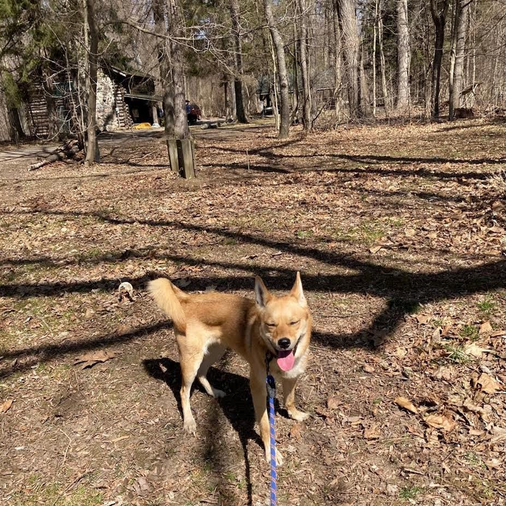 Encompassing almost 400 acres with woodland trails, St. Patrick’s County Park is a great place to explore the outdoors with your furry friend. There are many trails that connect together so you can make your hike longer or shorter depending on how you feel. Maple the dog (pictured below) is a regular visitor to the park and enjoys hiking along the St. Joseph River, through the Manion Canyon Loop, which goes by the historical Manion Cabin that is hidden within the park.